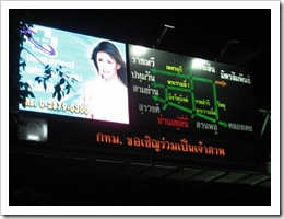 | Jour 17 Bangkok – Siam Paragon – Patpong (2) C’est au Siam Paragon un rutilant centre commercial de Bangkok que nous passons la fin d’après midi. le contraste est saisissant entre les boui boui du pays et ce temple de la consommation calqué sur le modèle américain. Quelques données : 400 000 m2, 300 commerces, le plus grand aquarium d’asie, les concessions Porshe, Ferrari, un opéra et un cinéma (testé par Céline et Stéph en VIP) En fin de soirée nous rejoignons Christian et Corinne par le Skytrain au Mc Do de Patpong et deux club de Gogo girls plus tard (les maillots n’étaient plus bleus mais à carreaux) on rentre à l’hôtel. Cette fois… Ça sent vraiment la fin. | ![]() |
