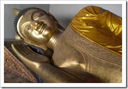 Jour 6 Chiang Maï Le matin, visite des centres d’artisanat d’état. Certains du groupe sentent le traquenard et restent à l’hôtel pour profiter de la pistoche. Nous tombons dans le panneau et subissons une matinée très mercantile visiblement imposée aux opérateurs par les autorités. L’après midi, visite du temple Doi Suthep dans la région de Chiang Maï (Christian se demande combien il en reste a visiter) C’est au sommet de ses 350 marches que nous entendons un groupe de rock local et admirons une statue recouverte de feuilles d’or par les fidèles. |