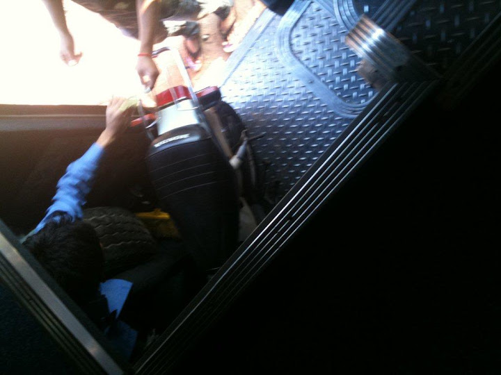 Jour 4 Siem Reap – Phnom Penh, bus local C’est en bus local que nous rallions Phnom Penh, la capitale à 300 km au sud. Il est vraiment plein comme un œuf et ici on optimise vraiment le remplissage, j’ai des enfants dans les cheveux et des mobylettes dans les pattes ! A l’arrêt sur un marché écrasé par la chaleur, nous découvrons que la tarentule et la sauterelle grillée ne sont pas des attractions pour les touristes. D’ailleurs tout le bus en achète et ça grignote sec autour de nous ! (eh oui, même le petit derrière moi, il en croque de la sauterelle !)