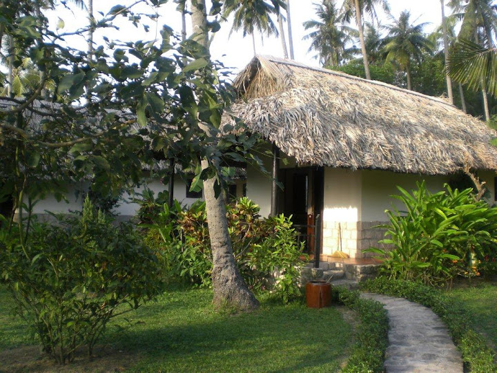 Jour 8 Phu Quoc Maï House Hôtel, long Beach Les seules nuits réservées avant notre départ étaient sur Phu Quoc island (peak season oblige) Nous ne sommes pas déçus de notre choix, le Maï House hotel, le cadre est magnifique et notre bungalow, confortable et aménagé avec goût. Notre premier jour sur l’île est marqué par une vilaine turista qui après une journée d’errance entre le bungalow et la plage, m’achève le soir au restaurant où je perds carrément connaissance. Petit malaise vagal sans gravité.